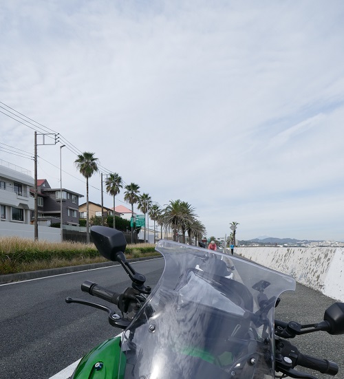 少し走って、ヤシの木並木のいつもの写真スポット↓