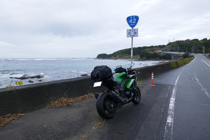 国道42号で海沿いを走る
