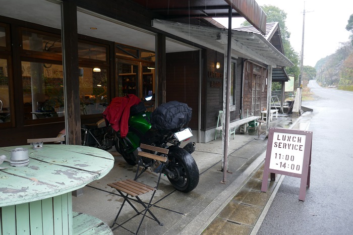 雨の中、来訪したので軒下へバイクを停めさせていただいた↓