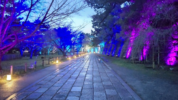 帰り道、大手門の手前がライトアップされていて幻想的!