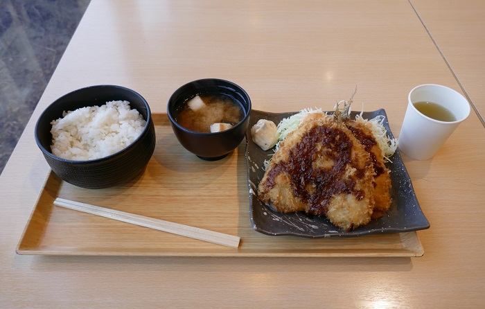 ここで昼食です。アジフライ定食です。身が厚いし、美味かった!↓