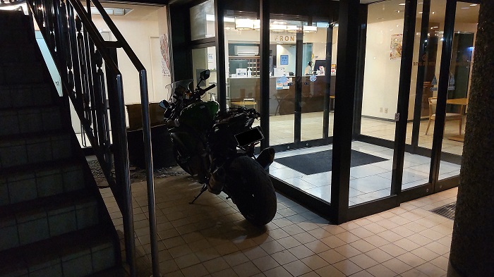 フロント脇に停めさせていただいたのでセキュリティ的に安心!